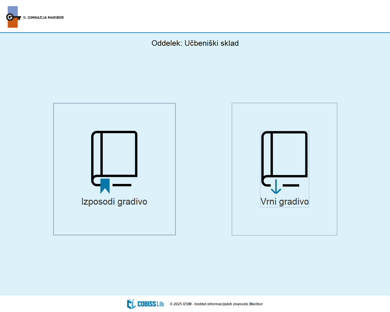 Šolska knjižnica II. gimnazije Maribor (DGM) uporabnikom ponuja možnost samostojnega izposojanja in vračanja gradiva.