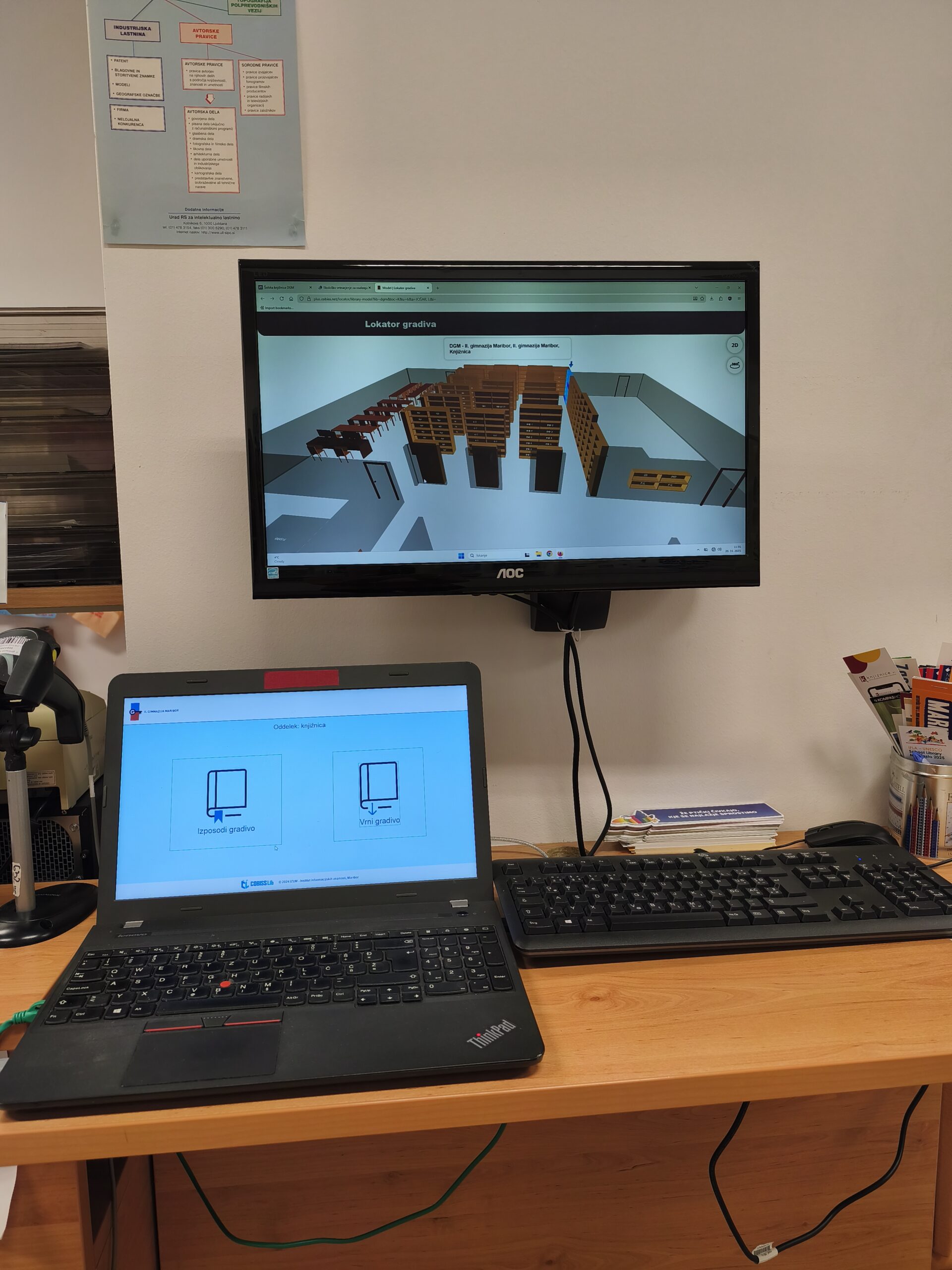 In zdaj še v knjižnicah. Na podoben način izbrani računalnik ob namestitvi aplikacije za samostojno izposojo in vračanje gradiva ne omogoča ničesar drugega, nič brskanja po spletu ali urejanja dokumentov, brez vklapljanja in izklapljanja pa je vsakomur na voljo za izposojo in vračanje gradiva.